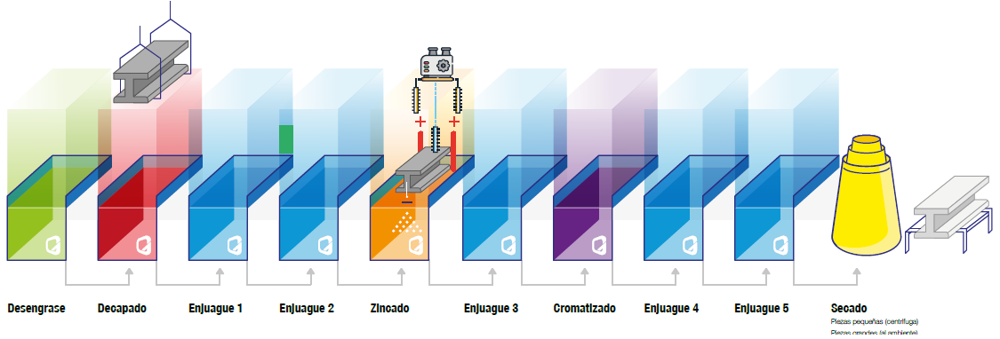 El galvanizado o cincado electrolítico es un recubrimiento sobre el acero con zinc al 99,9% de pureza, realizado mediante un proceso de electrolisis con corriente contínua.